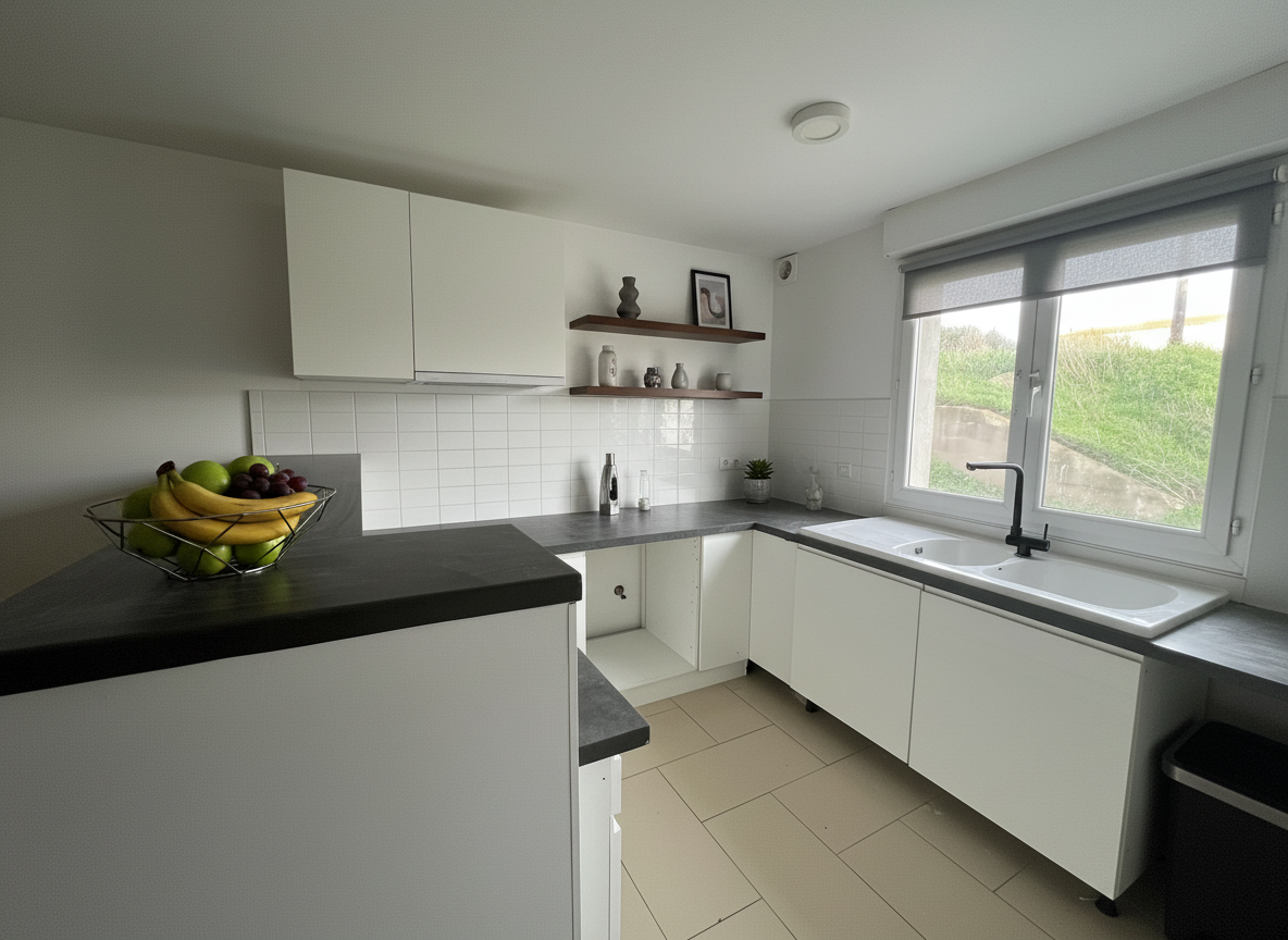 Prêt à vivre : Cuisine entièrement équipée et grande pièce de vie